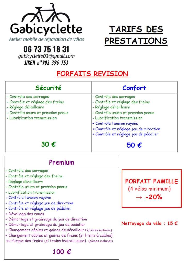 Tarifs des prestations